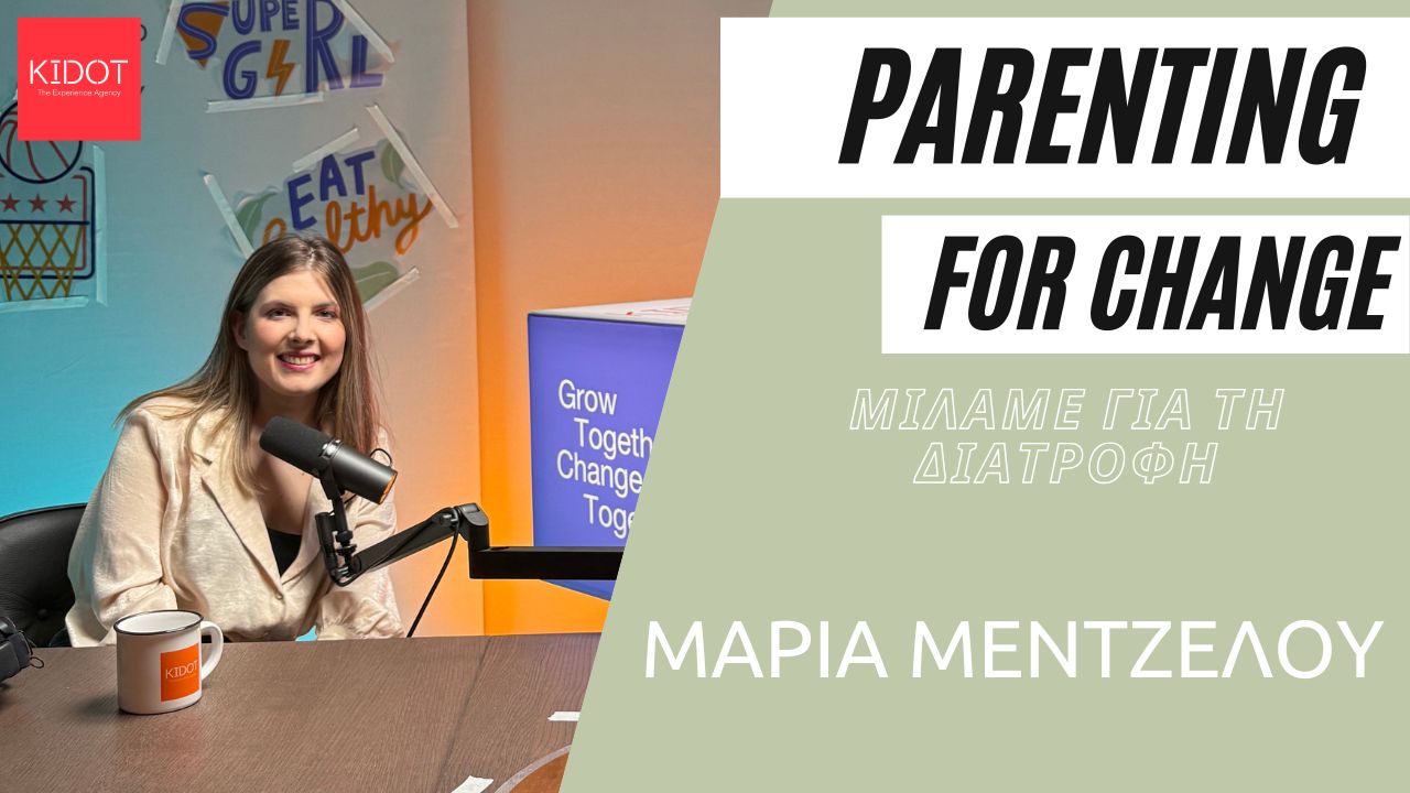 Στο όγδοο επεισόδιο της σειράς podcast & vidcast “Parenting for change” αγγίζουμε το θέμα της διατροφής με καλεσμένη τη διατροφολόγο, Μαρία Μεντζέλου για το πώς φέρνουμε την αλλαγή στον τομέα της ισορροπημένης διατροφής, με παιδιά και γονείς να είναι συνοδοιπόροι στο νόστιμο ταξίδι της διατροφής με έμφαση στο κοινωνικό στοιχείο και χωρίς άγχος.