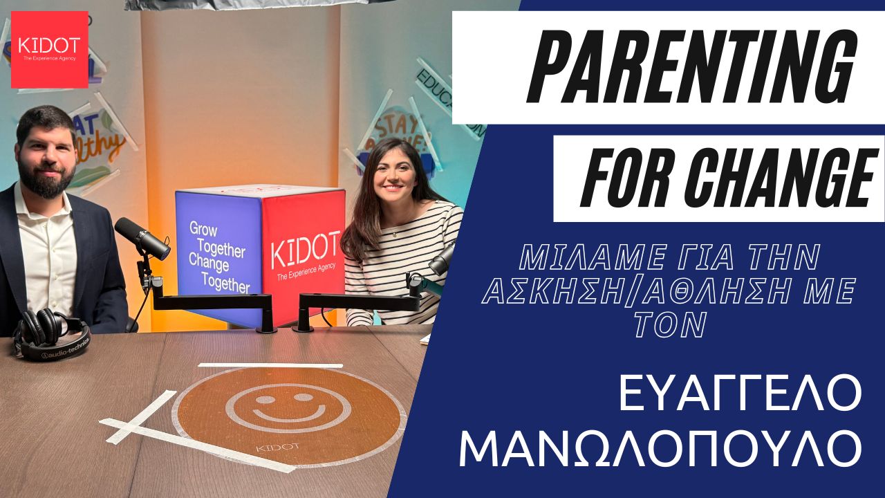 Η καινούρια σειρά podcast και vidcast “Parenting for change” του νέου KIDOT multimedia project, “We are embracing change” είναι εδώ. Μέσα από 8 διαφορετικές θεματικές, τη Γυναικεία Ενδυνάμωση, την Σεξουαλική Διαπαιδαγώγηση, το Bullying, την Τεχνολογία και το Digital Literacy, το Περιβάλλον, την Άθληση/ Άσκηση, την Διατροφή και την Αναπηρία, ενημερώνουμε, ευαισθητοποιούμε και εκπαιδεύουμε τους σύγχρονους γονείς. Στόχος είναι οι γονείς να αναπτύξουν μία υγιή σχέση με το παιδί τους, η οποία θα βασίζεται στην συζήτηση και την εξάλειψη των διαφόρων ταμπού.