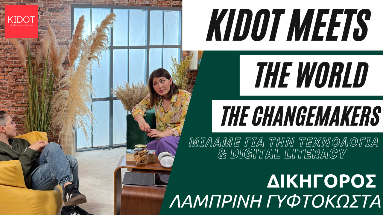 Στο τρίτο επεισόδιο της σειράς video “KIDOT meets the world: The Changemakers”, τα παιδιά συναντούν τη δικηγόρο Λαμπρινή Γυφτοκώστα και συζητούν για θέματα τεχνολογίας, digital literacy, αλλά και για τα ψηφιακά δικαιώματα. Τι είναι η τεχνητή νοημοσύνη και πώς μπορούμε να ξεχωρίσουμε τι είναι αληθινό και τι όχι στον ψηφιακό κόσμο; Τι είναι το cyberbullying και πώς ταξιδεύει η πληροφορία στο διαδίκτυο; Πώς μπορεί κάποιος να πάρει προσωπικές πληροφορίες για εμάς μέσα από τα social media ή τα gaming platforms;