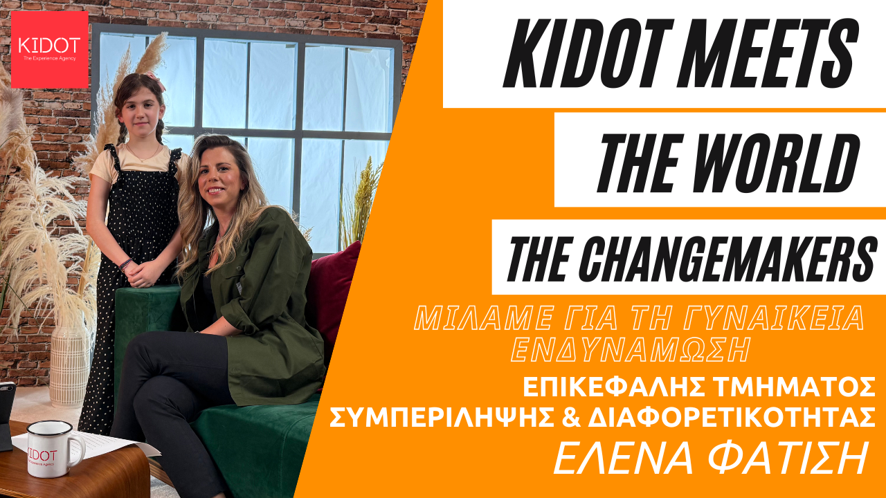 Στο τέταρτο επεισόδιο της σειράς video “KIDOT meets the world: The Changemakers”, Τα παιδιά συναντούν την Έλενα Φατίση, επικεφαλής Τμήματος Συμπερίληψης & Διαφορετικότητας και συζητούν για την έμφυλη ισότητα και τη γυναικεία ενδυνάμωση. Ποιες προκαταλήψεις υπάρχουν ακόμα και σήμερα για τη γυναίκα; Πώς αντιμετωπίζουν τα παιδιά τις στερεοτυπικές αντιλήψεις σχετικά με τα φύλα; Πώς ακριβώς συμβάλλει το επάγγελμα της κυρίας Φατίση στην κατάρριψη των διακρίσεων και την επίτευξη της ισότητας στον εργασιακό (και όχι μόνο) χώρο;
