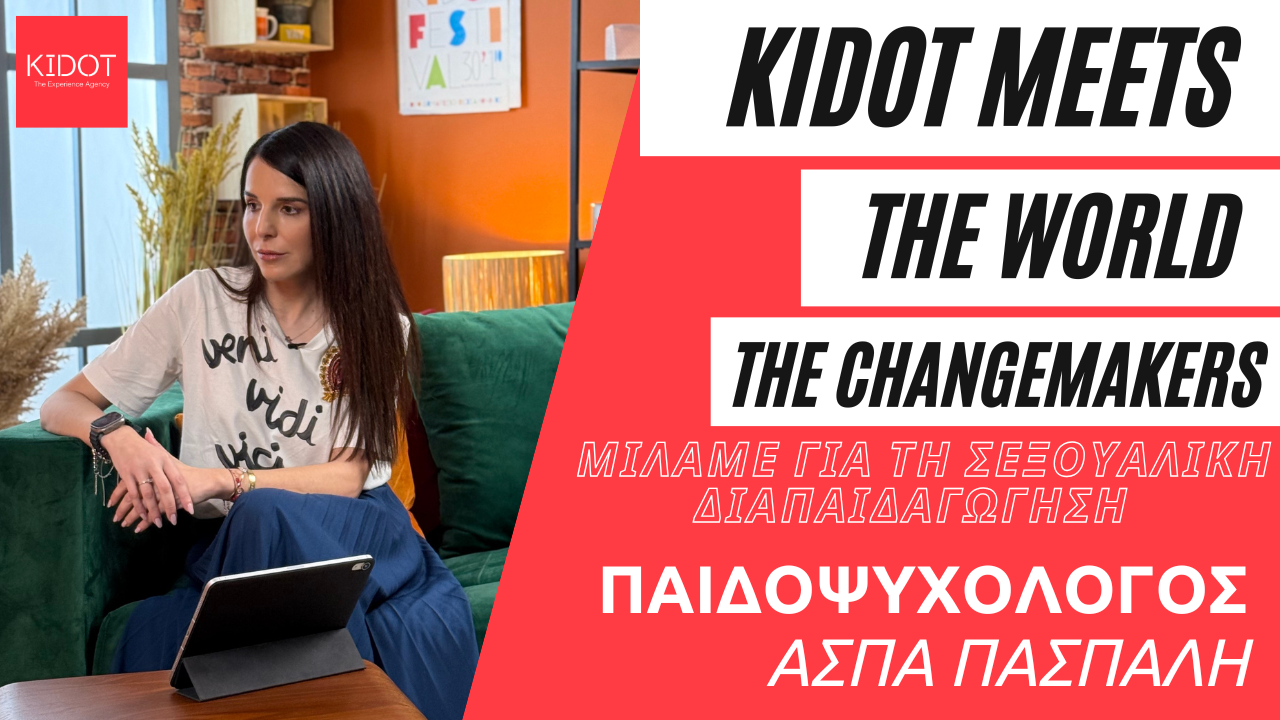 Στο δεύτερο επεισόδιο της σειράς video “KIDOT meets the world: The Changemakers”, τα παιδιά συναντούν την παιδοψυχολόγο Άσπα Πασπάλη και συζητούν για τη Σεξουαλική Διαπαιδαγώγηση. Τι είναι τα έμφυλα στερεότυπα και πώς το επάγγελμα του ψυχολόγου μπορεί να βοηθήσει στην εξάλειψη αυτών και στο να βρει ο καθένας τη σεξουαλικότητά του; Τι είναι η συναίνεση και ο γονικός έλεγχος και ποιοι πιθανοί κίνδυνοι προκύπτουν αν τους ζητηθεί να διαθέσουν προσωπικές φωτογραφίες στο διαδίκτυο;